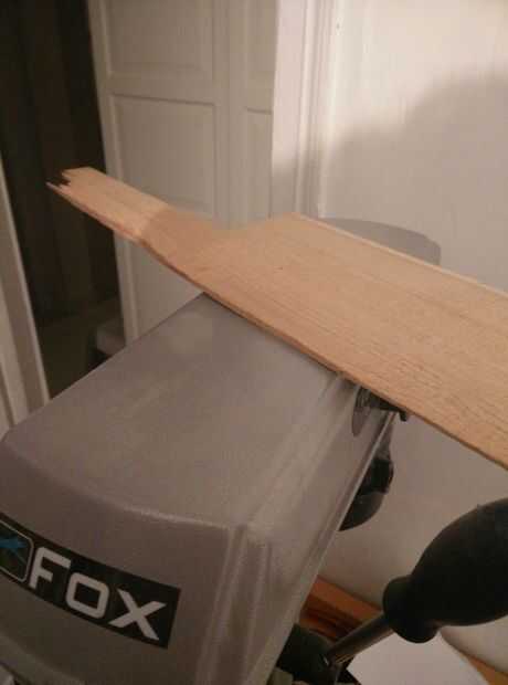 Una fina lámina de madera. Las dimensiones son, en centímetros: (bladelength + 3) *(bladewidth + 2) *(bladethickness + 0.2)