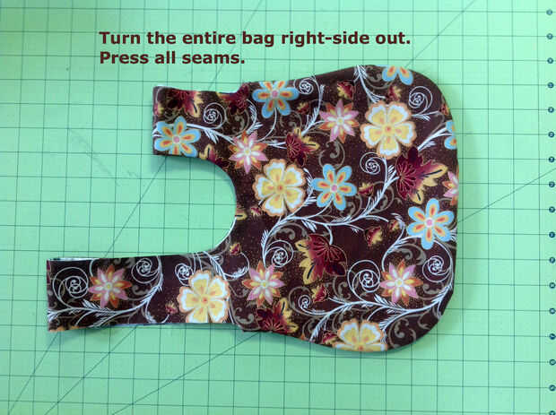 Con el mango más apertura, gire todo el bolso derecho-lado hacia fuera.