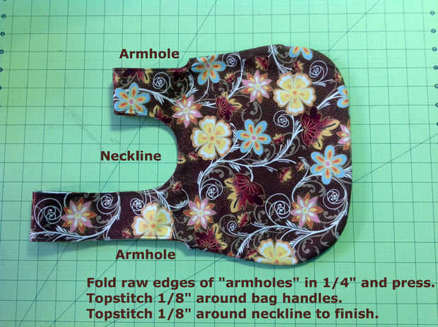 Pespuntear el 1/8" en mangos de la bolsa hasta el final. Asegúrese de que usted captura ambos lados.