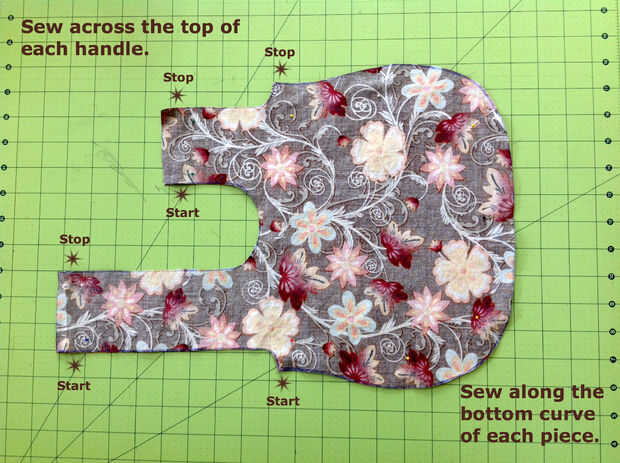 Coser en la parte superior de cada manija.