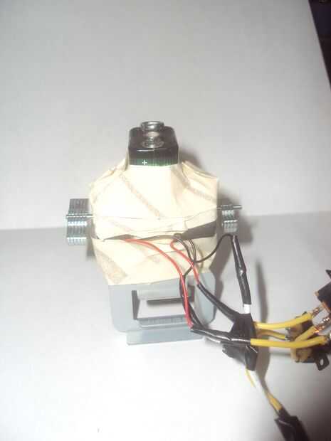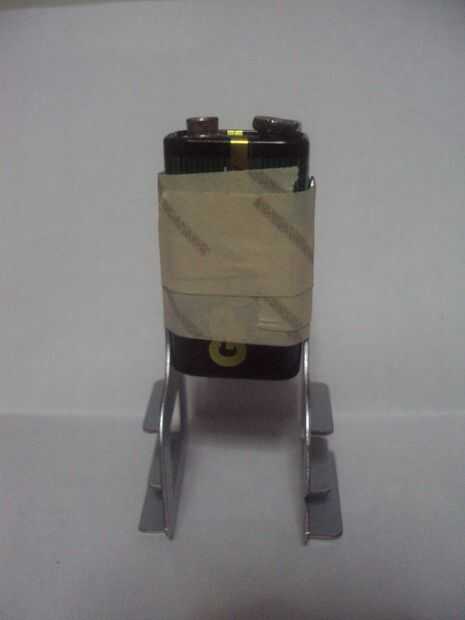 Primero se unió a la batería en las patas del robot utilizando la cinta adhesiva.