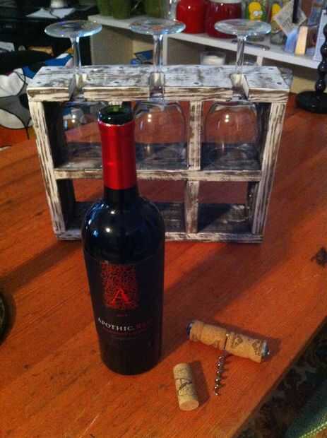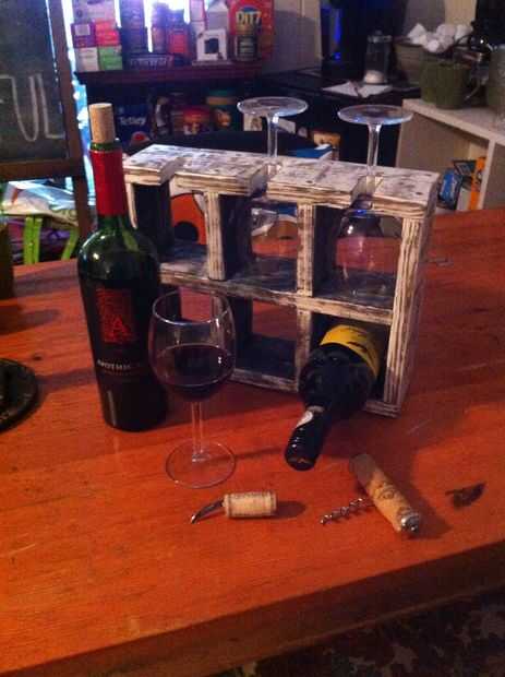 Yo recientemente estaba limpiando mi cuarto de trabajo y notó que tenía un par de piezas de madera de la plataforma de otro proyecto. Puesto que había solamente dos piezas, yo sabía que no podría hacer nada demasiado grande con él. Había acabo de comprar un conjunto de copas de vino de IKEA y finalmente decidió hacer un pequeño botellero.
