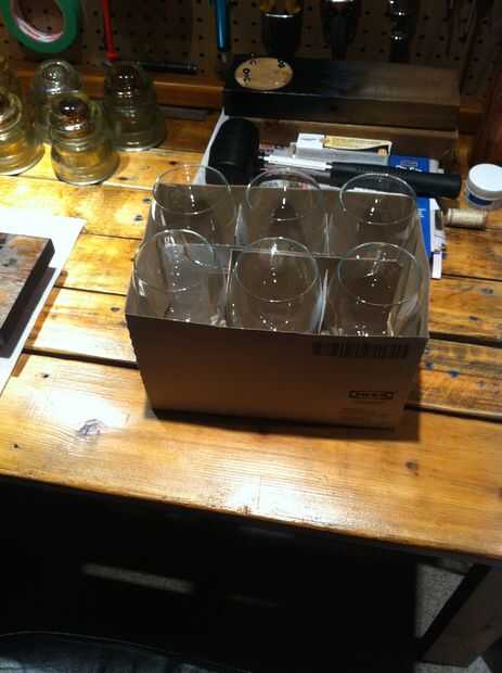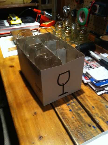 Utilicé la caja que las copas de vino una plantilla para la parrilla. Sacó de un bosquejo áspero de lo que quería y entonces salió lo que las medidas debían ser para acomodar todo. Hice mía 3 vasos y tres botellas, pero es un diseño muy simple y fácilmente puede ser ampliado en.