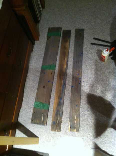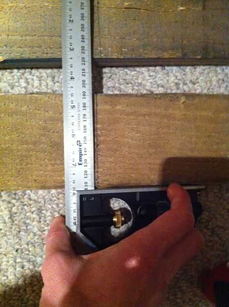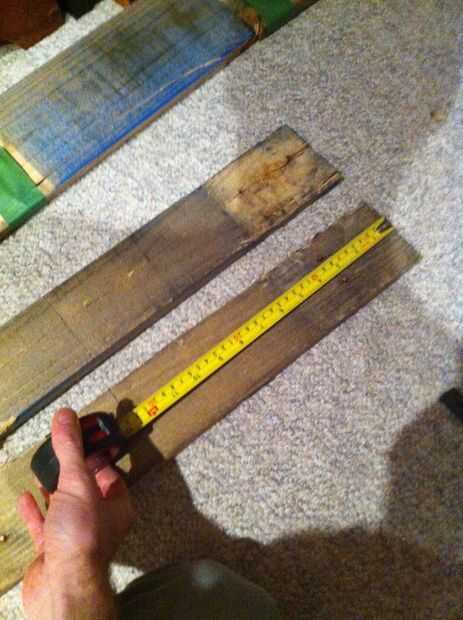 A continuación, mide las longitudes de la madera de palet a cortar y había marcado con mi plaza y una pluma.