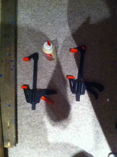 Mi madera de pallet fue dañado ligeramente desde el proceso de desmantelamiento. Que terminé tener que pegar un pice que había partido hacia atrás juntos. Sólo corrió una gota de pegamento para madera a lo largo de la fractura, entonces fijar a la madera y dejarla secar por unas horas.