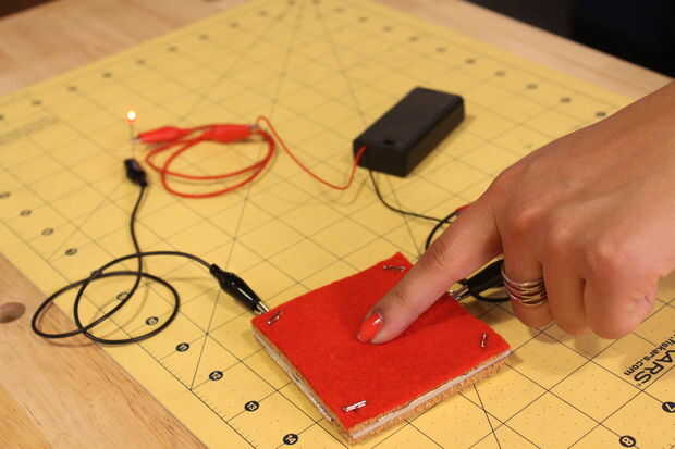 Quería crear un botón sencillo que era niños y fácilmente ilustraría cómo funciona un botón. Esto también podría ser un modelo a pequeña escala de un cojín de suelo DDR.
