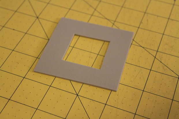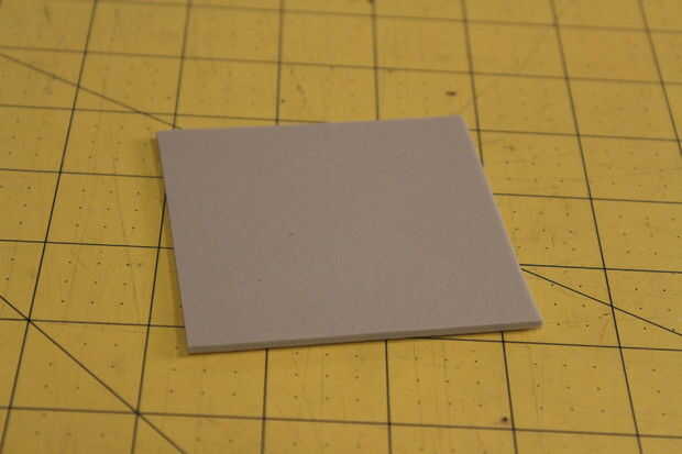 La espuma va a actuar como capa aislante entre la parte superior e inferior tablero del corcho cubierto de papel de aluminio. Necesitaremos cortar un cuadrado pequeño en el centro de manera que las tiras de papel de aluminio tapa y parte inferior tocará cuando presiona. Mantuve un borde de 3/4".