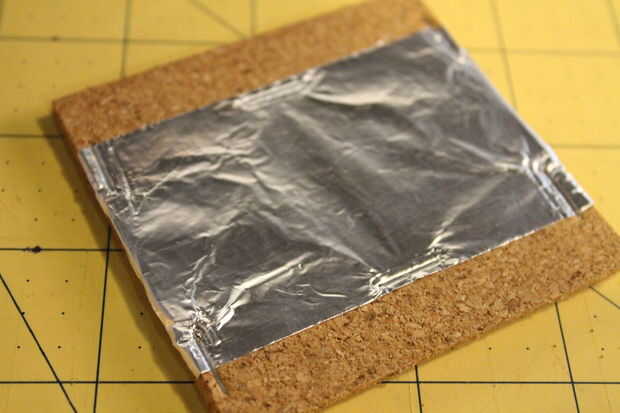 Coloque la tira de hoja de lata en el centro del tablero del corcho.