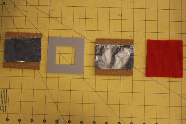 - con papel de aluminio hacia abajo, el clip de papel en el centro del corcho, fieltro atado
