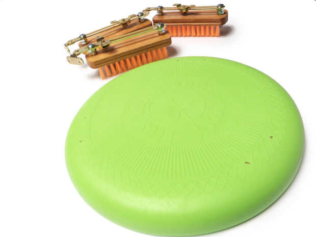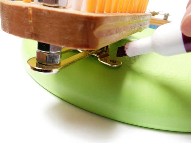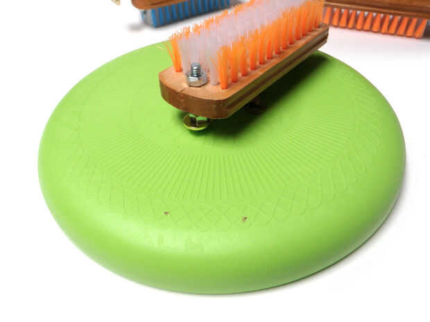 Coloque el soporte del cursor al ras con el borde del frisbee y hacer marcas de perforación.
