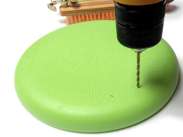 Pedacito de taladro de los agujeros de taladro en el frisbee con un 1/8".