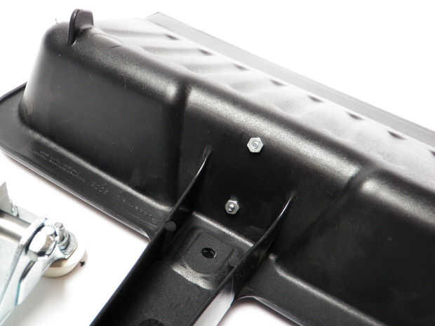 Fije el soporte de la batería a la bandeja de polvo con las restantes dos 3/8" tuercas y tornillos.