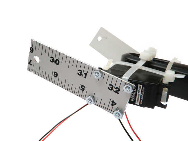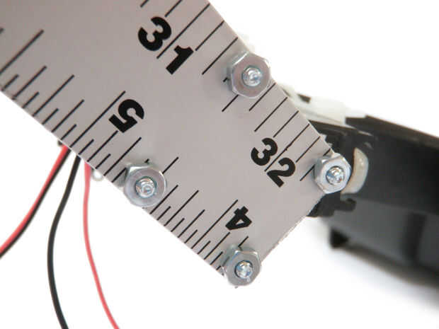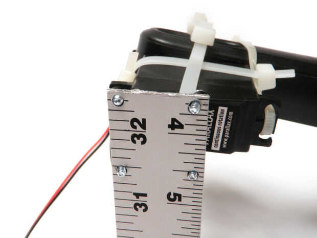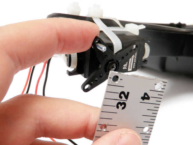 Fijar las secciones de la regla a los cuernos servo usando 3/8" tuercas y tornillos.
