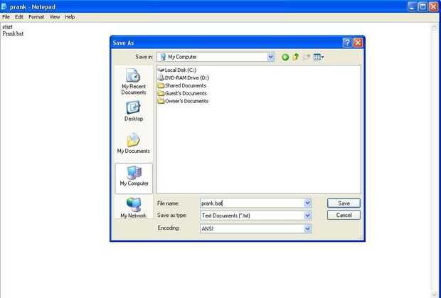 4. Guarde su documento como File.bat