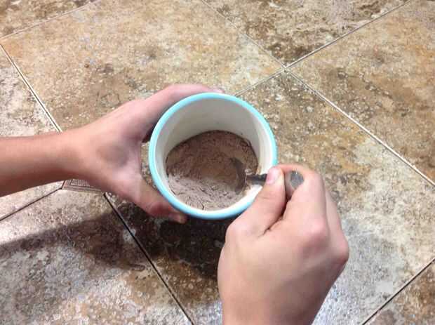 Paso 1: ingredientes 1/3 taza de azúcar 1/4 taza de harina 1/4 de taza de cacao una pizca de sal un poco de aceite de oliva y helado de crema (opcional)Paso 2: Agregue agua a todos los ingredientes, después te los pones en la taza. Ahora mic todo.Pas
