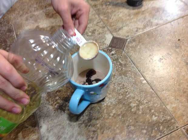 Paso 1: ingredientes 1/3 taza de azúcar 1/4 taza de harina 1/4 de taza de cacao una pizca de sal un poco de aceite de oliva y helado de crema (opcional)Paso 2: Agregue agua a todos los ingredientes, después te los pones en la taza. Ahora mic todo.Pas
