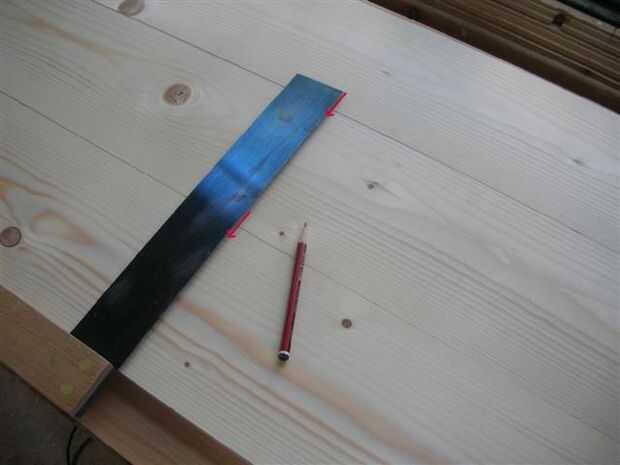 • Use un escuadra para marcar las líneas entre las juntas de largo, las líneas guiará al usar su ensambladora de galletas.
