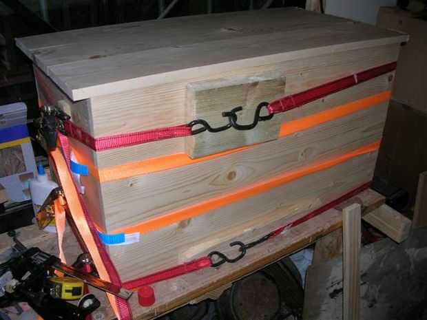 • Colocar 2 tiras de la tapa de la caja como soporte, pegamento, tornillos y cierre con tapones de madera duras. Puede pintar este cuadro simple, añadir molduras o utilizar router eléctrico para crear unas formas o escritos en la caja.