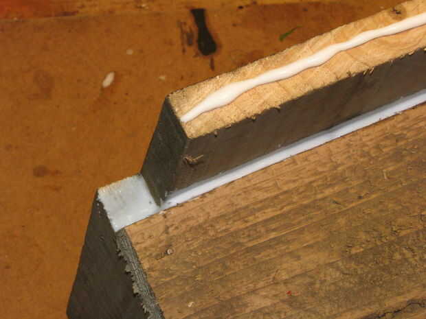 Trabajar una gota del pegamento en la grieta donde la tapa se encuentra con la placa de respaldo para mantener la lluvia fuera. También frotar poco de pegamento en la veta en la parte superior, lados y parte inferior con el dedo para parar el agua que se absorbe tan fácilmente.