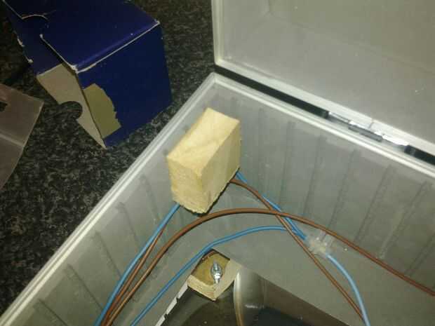 En cada esquina de la caja, en consonancia con la parte superior de la guarnición de la esponja, tornillo de tus bloques de madera en como baja abajo en el bloque que puedas sin partirlo (uso un piloto pequeño taladro a baja velocidad).