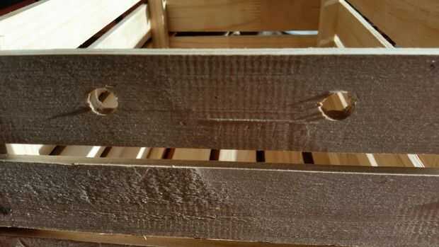 Encontrar el centro de la tabla superior en un panel del lado. Mida unos 5 cm a cada lado y perforar tan grueso como su cuerda náutica (mina era aproximadamente 1,2 cm).