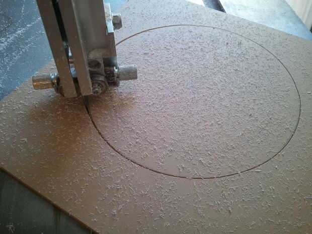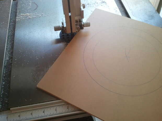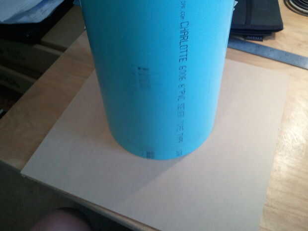 La parte superior e inferior son 1/4" acrillc. A trace el tubo. Encuentre el punto central y una salida más al círculo y pulgadas. corte a lo largo de la línea exterior.