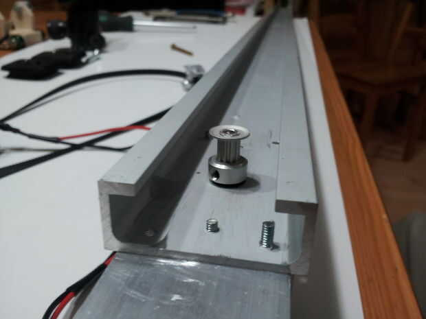 Una vez que el motor está en su lugar, puede fijar un engranaje en el eje con una llave allen pequeña (tuve que hacer uno mismo).