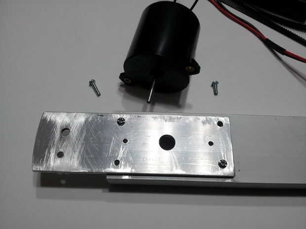 Para sujetar el motor, usted necesitará taladrar un agujero lo suficientemente grande como para caber el anillo plástico en la base del eje. Una vez en el lugar, trace y taladre 2 orificios para atornillar el motor sobre el riel.