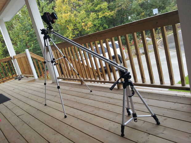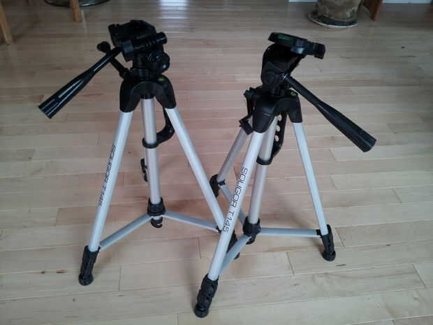 Empezar por establecer sus trípodes a diferentes alturas. Coloque la placa de liberación rápida en ellos.