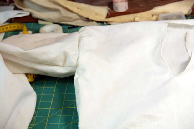 Insertar manga en la sisa en la camisa de adentro hacia afuera.