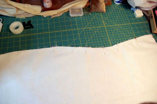 Coser el panel frontal a la trasera (derecho lados juntos) a partir de las caderas y terminar justo después se convierte en ancho máximo para el busto.