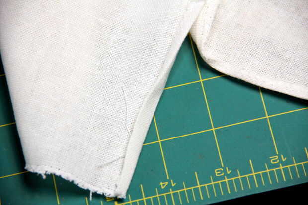 Doblar el borde dentro de su doblez anterior, ocultarlo. Hierro otra vez.