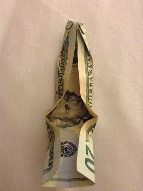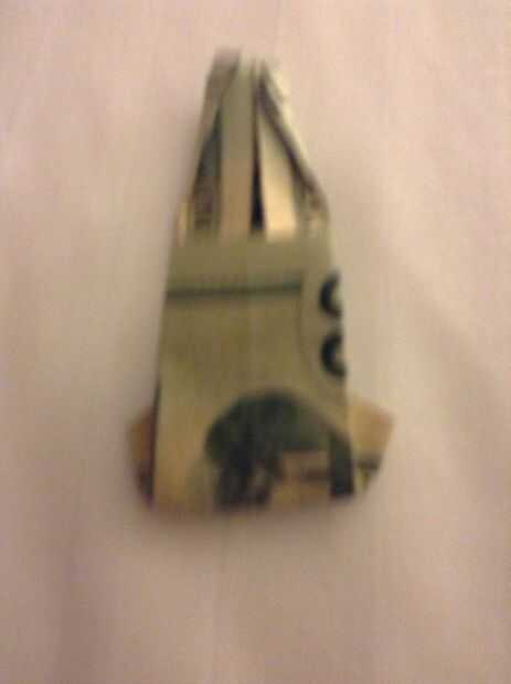 2: luego empuje la parte inferior del proyecto de ley sobre los pliegues pinchados pero asegúrese de no dejar que los pliegues doble con la parte inferior y mantener en su lugar (pliegue hacia abajo)