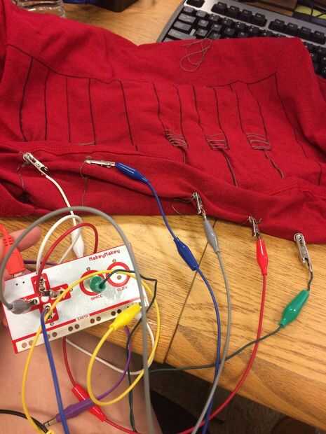 Coloque una pinza a cada complemento. Utilicé las teclas de flecha y la barra espaciadora en este programa para conectar el otro extremo de mi cocodrilo a las partes correspondientes del MakeyMakey. Recuerde que el MakeyMakey actos como un teclado sólo puede introducir en un puerto USB y eres bueno para ir.