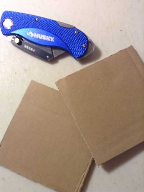 Ahora, necesita hacer 2 cuadrados de cartón que son 1/2 mango largo por 1/2 mango largo (en mi caso, 3.5 en x 3,5).