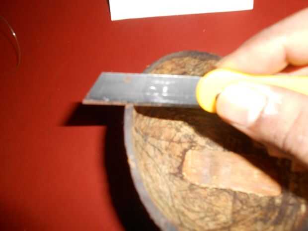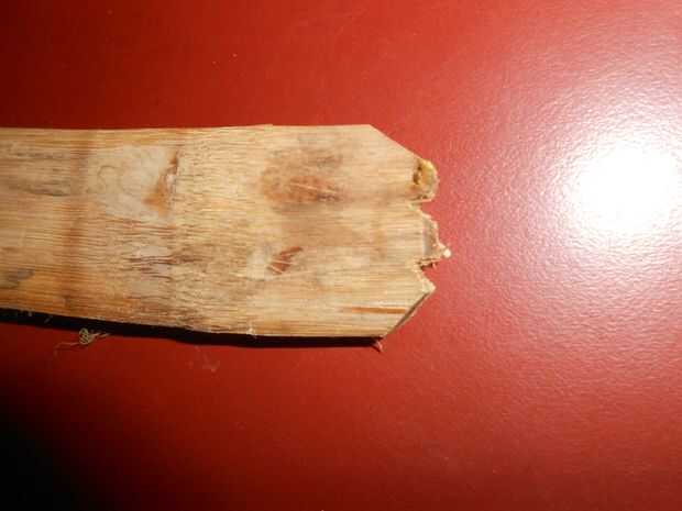 Ahora usando corte cuchilla raspar hacia fuera los lados del bambú en el extremo que tiene que fijarse en la cáscara, después de sujetar el palo de bambú en el favor de shell asegurarse bambú no cualquiera mueve más.
