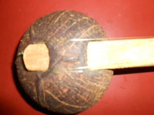 Medir la longitud de cadena que debe utilizarse, en mi caso fue alrededor de 52 pulgadas y han utilizado el trazador de líneas de pesca de .35mm. ahora atar los extremos de la cuerda para hacer un lazo y deslícelo hasta alojarlo en el instrumento como se muestra en la hoja en blanco. (tenga en cuenta que la cadena esté apretada y la tirantez es responsable de la melodía que sale de él, para experimentar).