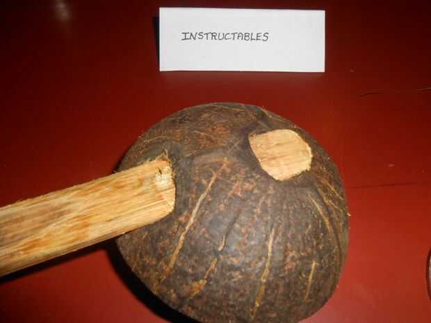 Se reúnen los requieren de materiales, usando papel de lija haga la superficie de la cáscara del coco más suave. y perfore un agujero en la cáscara con la taladradora (también puede usar clavos y martillo para cortar un agujero). Aquí he utilizado perforador y perforado los agujeros pequeños cerca para que se vea como forma ovalada, también he utilizado archivos para que se vea incluso. Ancho de los orificios debe ser menor que el palo de bambú.