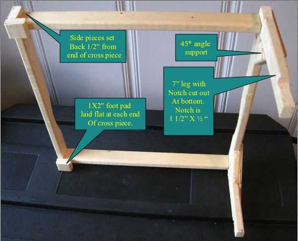 7-2 "piezas para apoya la pata delantera. Corte una muesca en la parte inferior de cada pata para eludir la cornisa a lo largo de la parte inferior de la herramienta de la caja (ver foto).