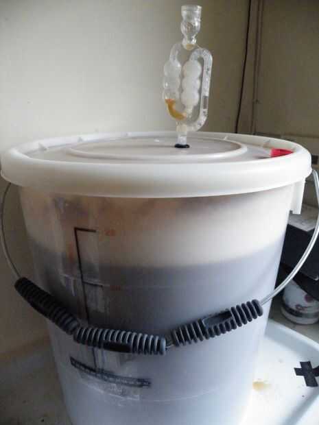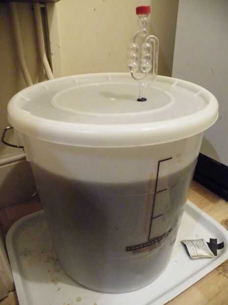 La mezcla de fermentación producen CO2, que necesita escapar. Necesita conectar la esclusa de Pelele al recipiente de fermentación (mina tiene un pequeño ojal para el propósito). La esclusa permite escape de CO2 , pero evita el aire y las bacterias volver-debe ser parte, lleno de agua hervida o vodka (barato).