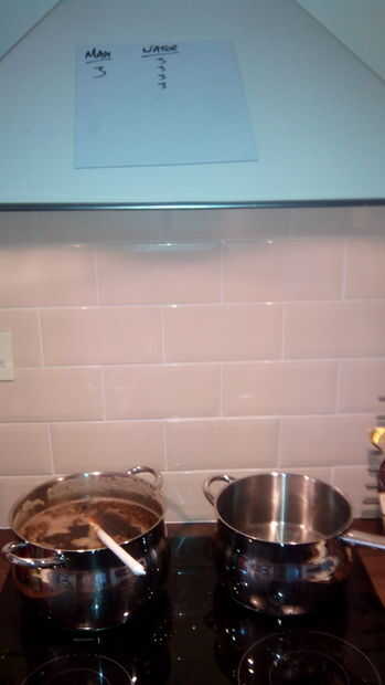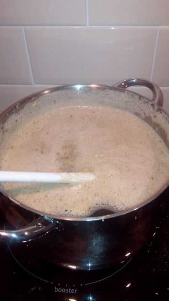 4. Vierta la olla de tres litros en el barril de cerveza y poner a otro a hervir.