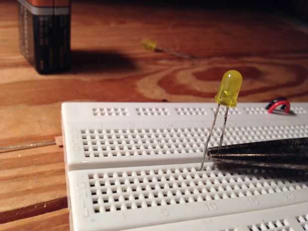 El pan es donde montar el circuito sin soldaduras. Placas de pan se conectan hacia arriba y hacia abajo, así que conectar dos componentes pone en la misma columna. En algún momento es difícil hacer un componente en, así que use pinzas de punta de aguja para ayudar a. Verifique si los componentes están conectados estableciendo el multímetro en ohms (Ω) y tocar a los dos componentes que deben conectarse. Si usted recibe un "1." los componentes no conectados. Si todo está conectado, entonces conecte la batería a ver si prende la. Si todo funciona, luego desarmarlo y pasar a soldar.