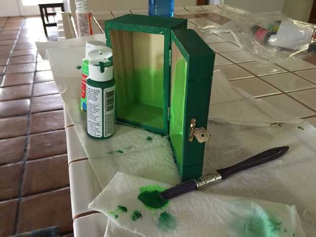 En primer lugar, comenzar dando su caja un par de capas de pintura y dejar secar totalmente. Si no desea agregar un color puede omitir este paso