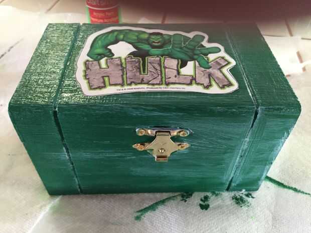 Una vez que se ha aplicado una capa de Mod Podge, garantizar los recortes del collage a la caja y espere a que el pegamento se seque. Una vez seco pintar otra capa de pegamento sobre las imágenes.