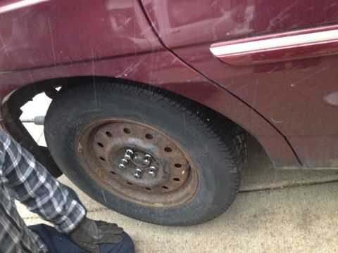 Apriete las tuercas con los dedos en un patrón de estrella. Sólo un poco apriete cada vez que haga esto y repita hasta que usted no puede apretar con los dedos ya.