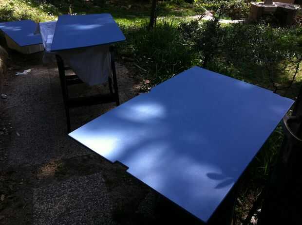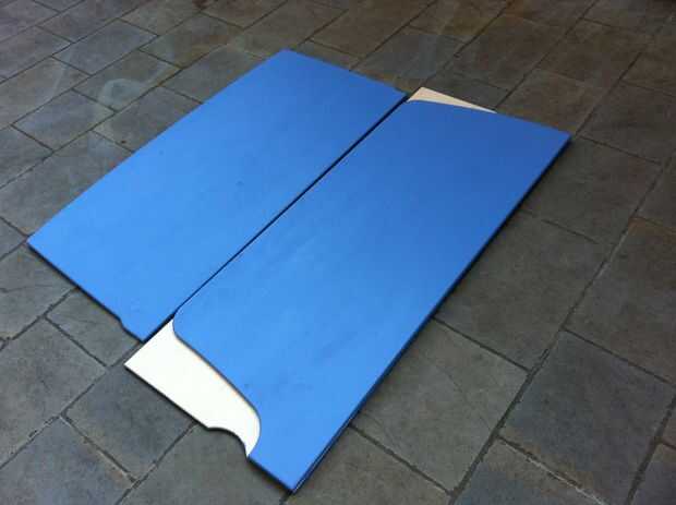 para realizar la base de la cama uso betulla capas madera pintada con esmalte de agua azul.