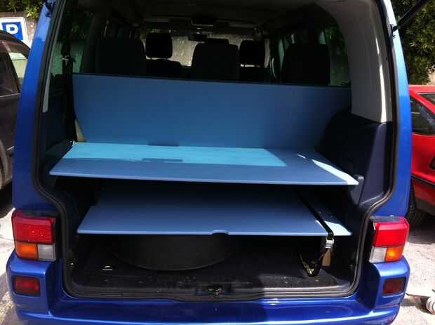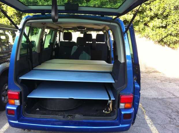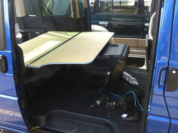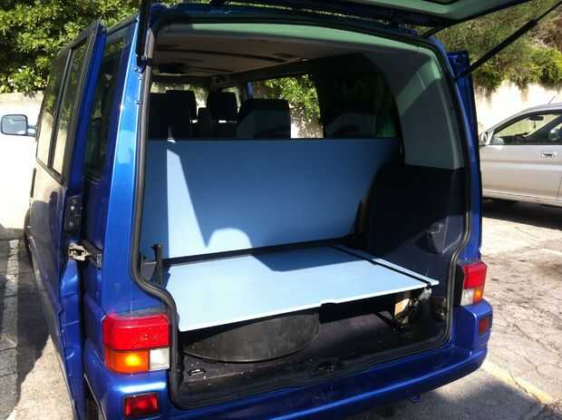 De minibús 9 plazas (3 + 3 + 3 asientos) para 2 personas cama una pequeña cocina, una mesa y mini WC chem.
