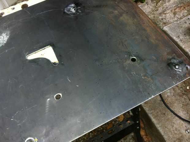La base giratoria de una lámina de hierro de 3mm construida agujeros menos cortes y soldaduras posibles