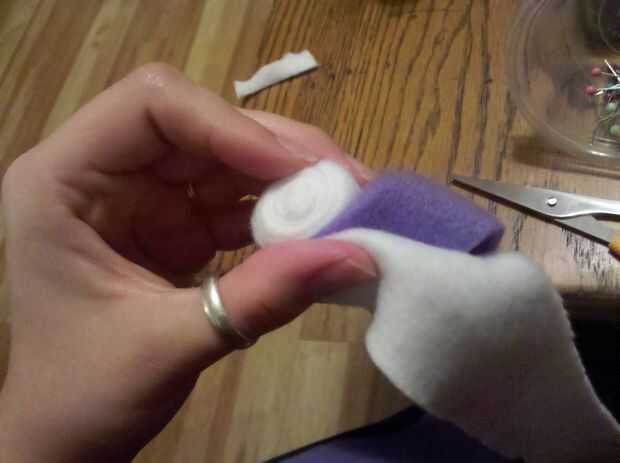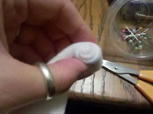 Escoge el color que desee en el centro de la cupcake. Doble paño grueso y suave por la mitad para que tenga aproximadamente 1" tira (necesita ver este rollo y asegúrese de que se está quedando uniformemente plegada). Luego, coloque el lado doblado hacia arriba (esta es la parte bonita) empiezan en un extremo y enrolle lana en espiral. Seguir estirando al tejido apretado como usted ir para evitar que ganas de ir a cualquier parte.