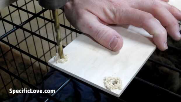 Luego perforé un orificio de 1/4" en cada esquina sobre una 1/2" hacia adentro.